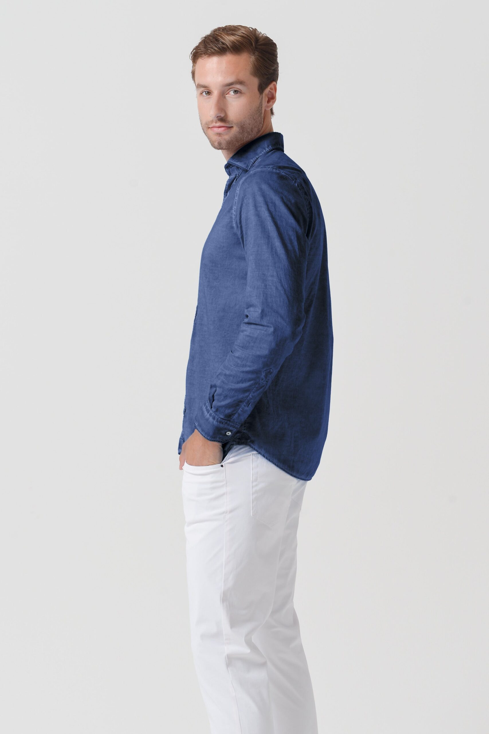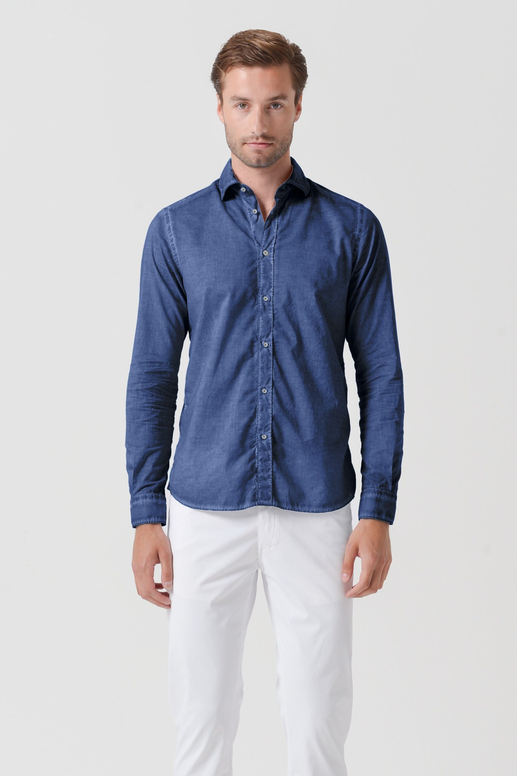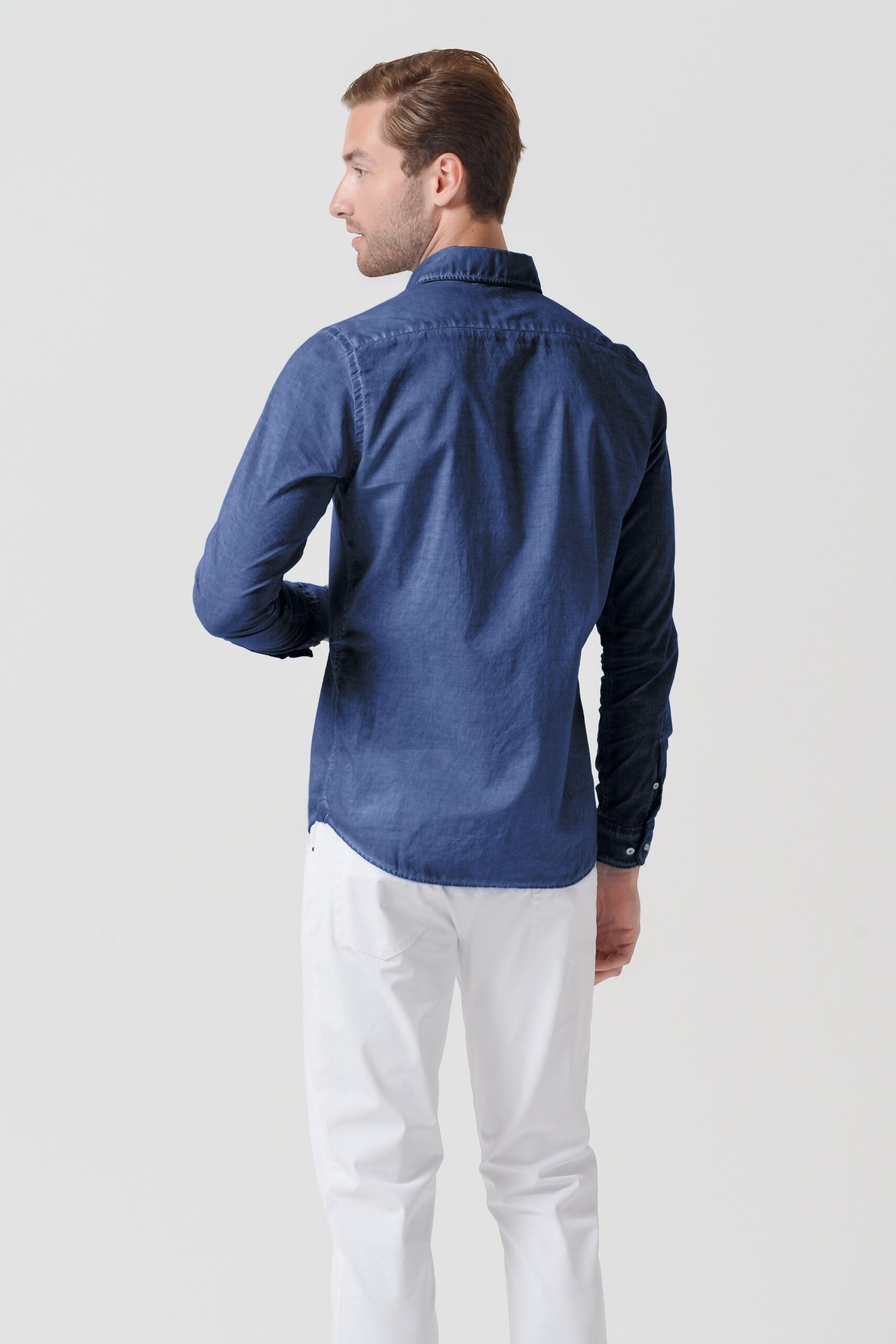 Relaxed fit shirt made from cotton voile. Features a spread collar and long sleeves. Constructed with ultra-light fabric. Colored using a rainbow technique with layered pigments […]